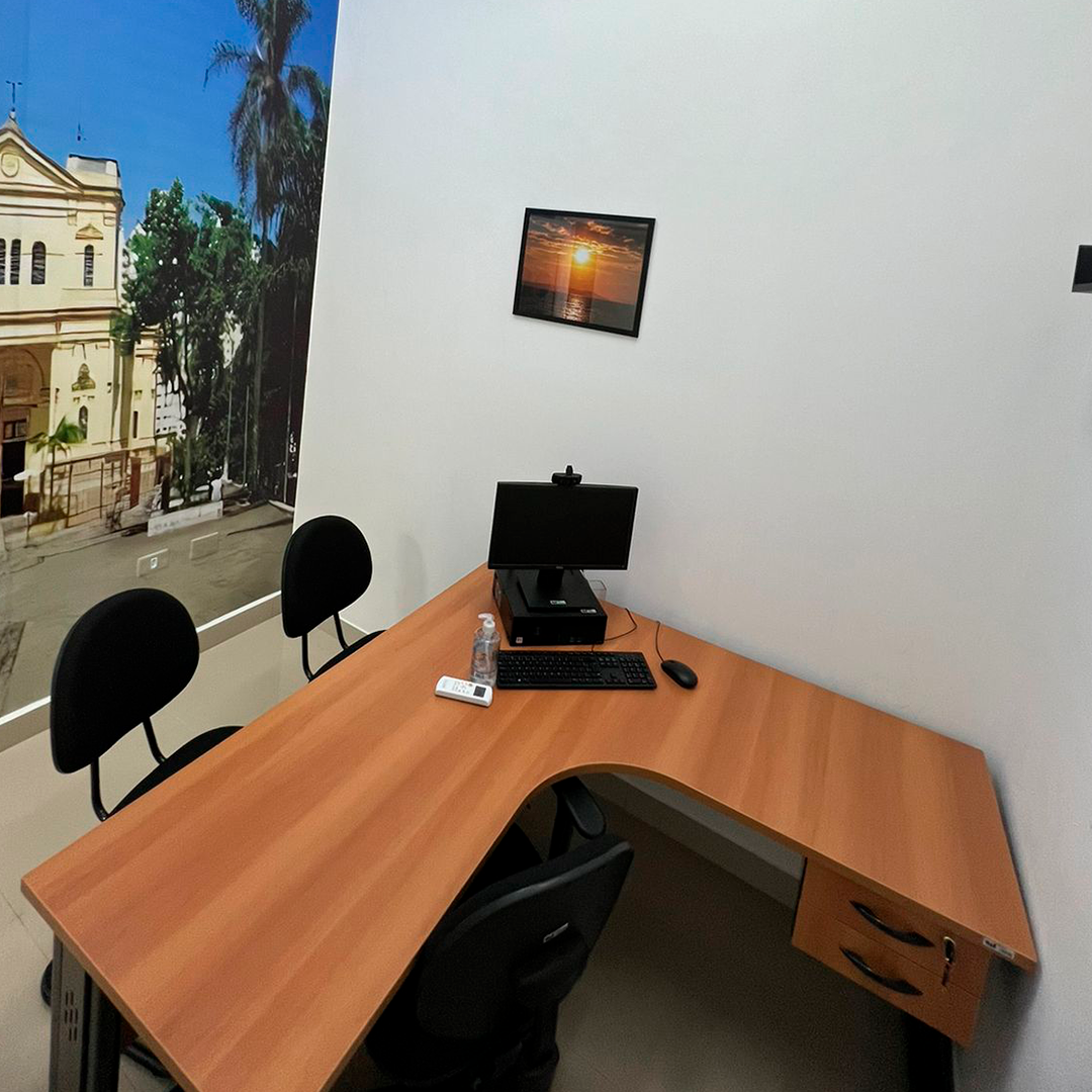 Disponibilizamos um ambiente estéril e tecnologicamente preparado para a realização de atos processuais por videoconferência. Nossas salas garantem a privacidade necessária para o exercício da advocacia, equipadas com hardware de alta performance, conexão estável à internet e climatização. O espaço é dimensionado para acomodar confortavelmente o profissional e até dois clientes, assegurando uma presença digital impecável.